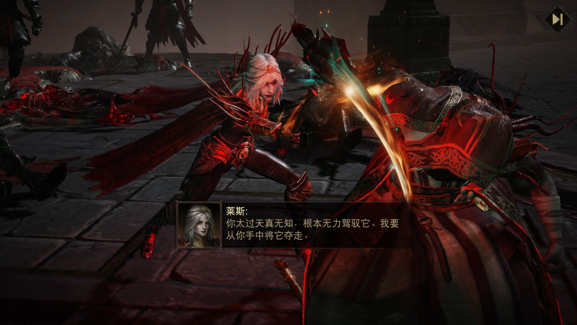 莱斯的追求与艾伯莱希特截然不同。她只想夺取世界之石的力量,塑造一个由死亡之力主宰的新世界。艾伯莱希特一次次渴望的陪伴、温暖与情谊,又一次被“背叛”撕得粉碎。他愤而举起法杖,将其刺向这位背信弃义之人。