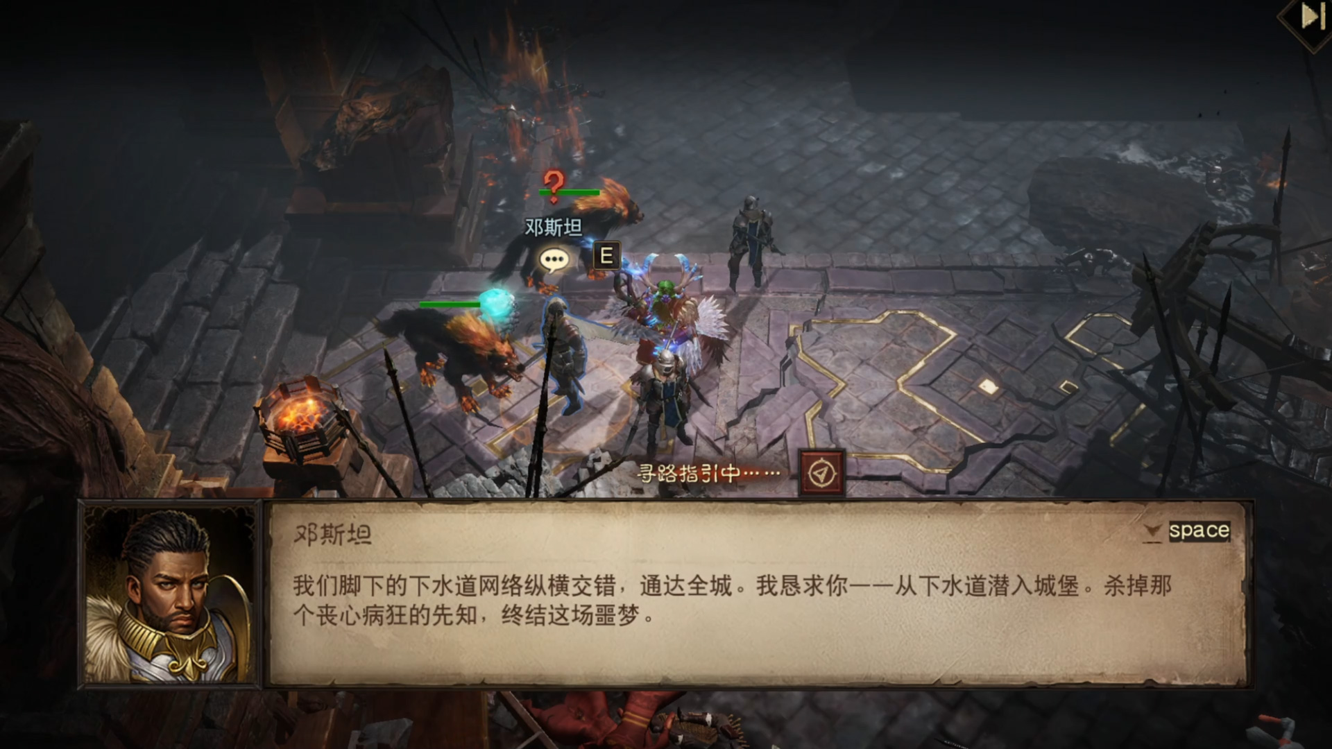 顺着这些痕迹,冒险者找到了民兵队长邓斯坦,也从他口中得知这片火海背后的真相:在创世之巢倒下、煞魔大军喷涌而出的那一刻,他只能选择以大火筑起怪物与城镇之间最后一道“围墙”。