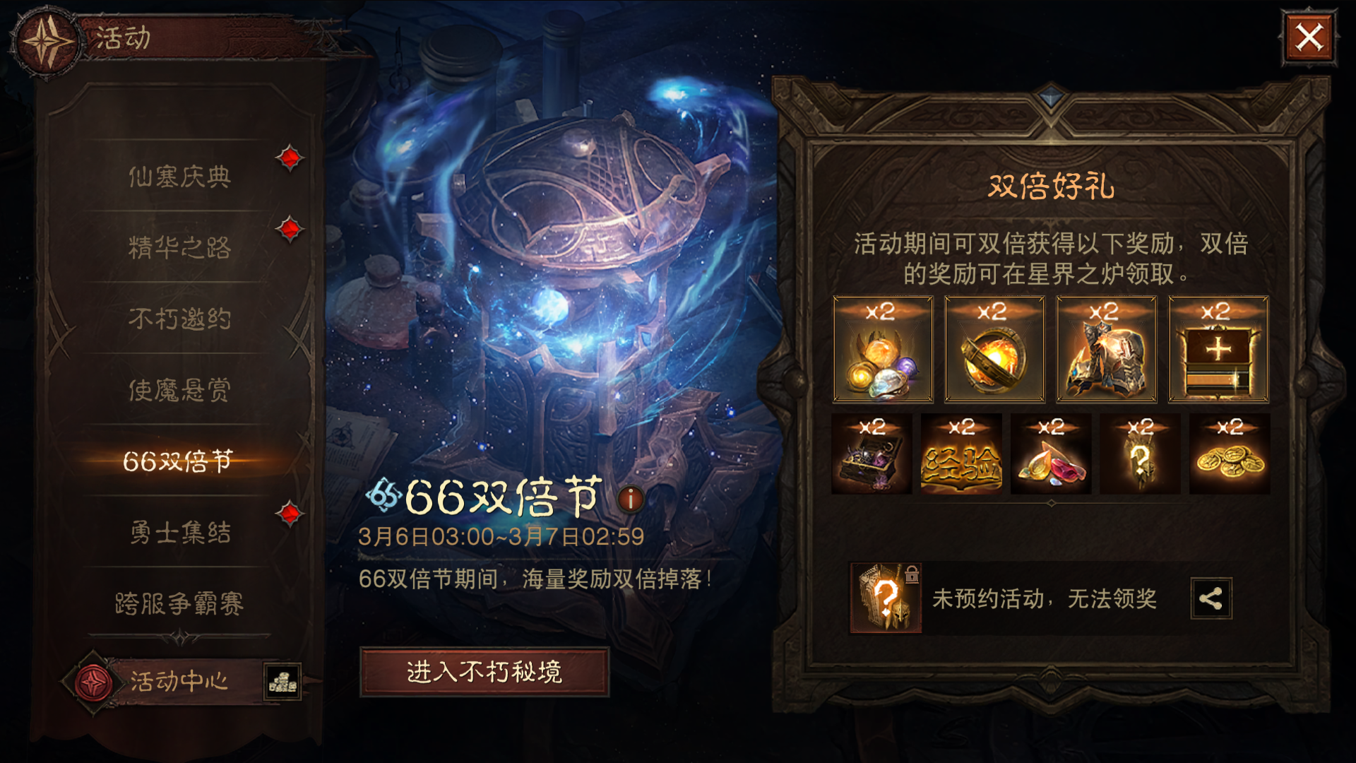 《暗黑破坏神:不朽》3月66双倍节现已开启,祝各位冒险者马年六六,好运橙双!